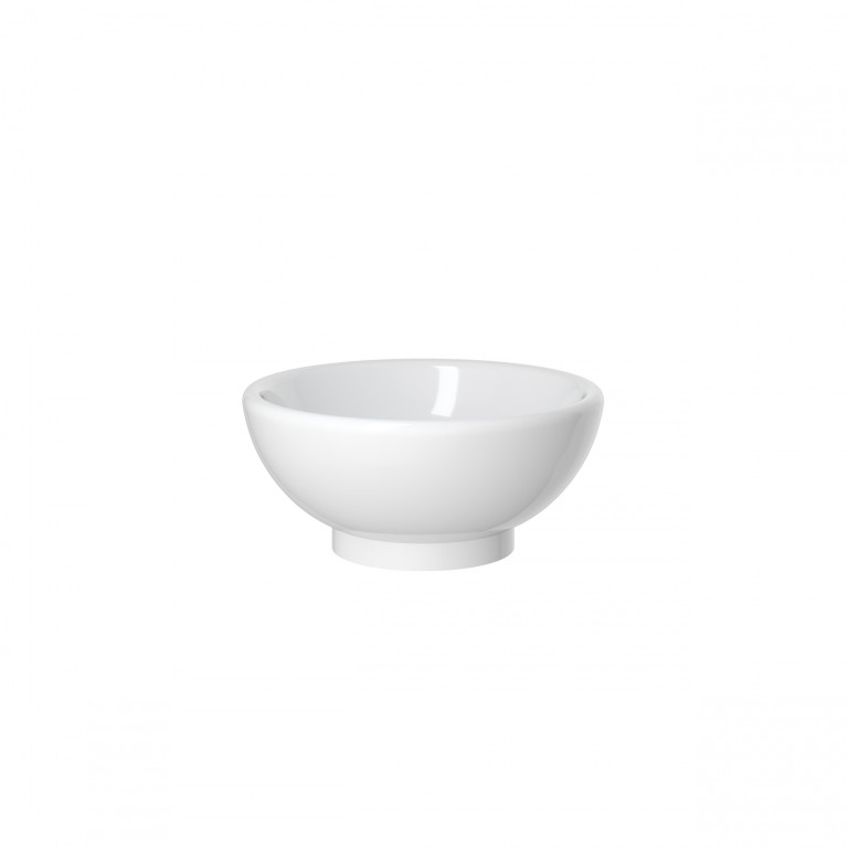 - The vessel bowl basin is constructed from ceramic, with a white gloss finish.