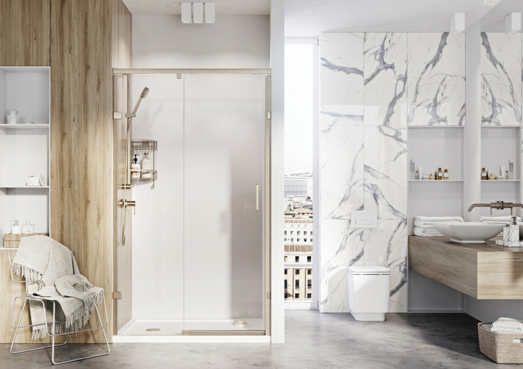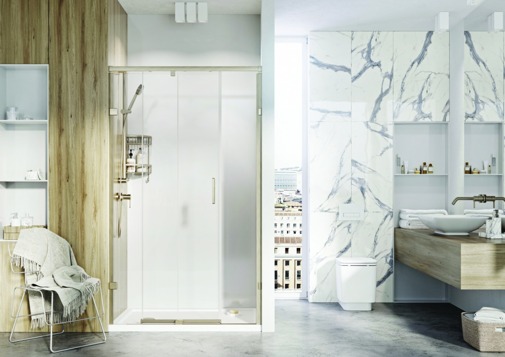 Liberty 8 1200 One Door Sliding Shower Enclosure Alcove RH - Brushed Brass