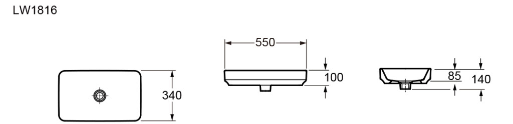 Alma 500mm Semi Countertop Basin 210mm Projection One Tap Hole