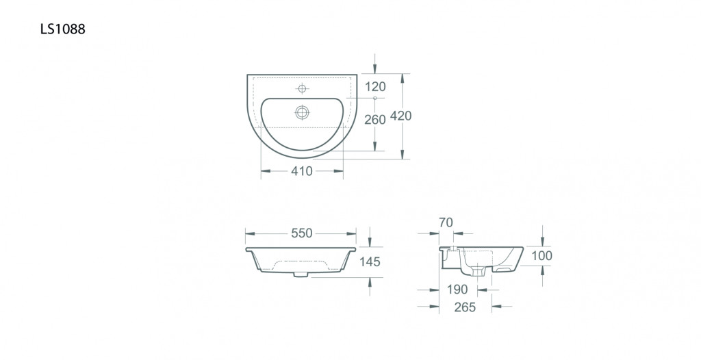 Alma 560mm Semi Countertop Basin 350mm Projection One Tap Hole