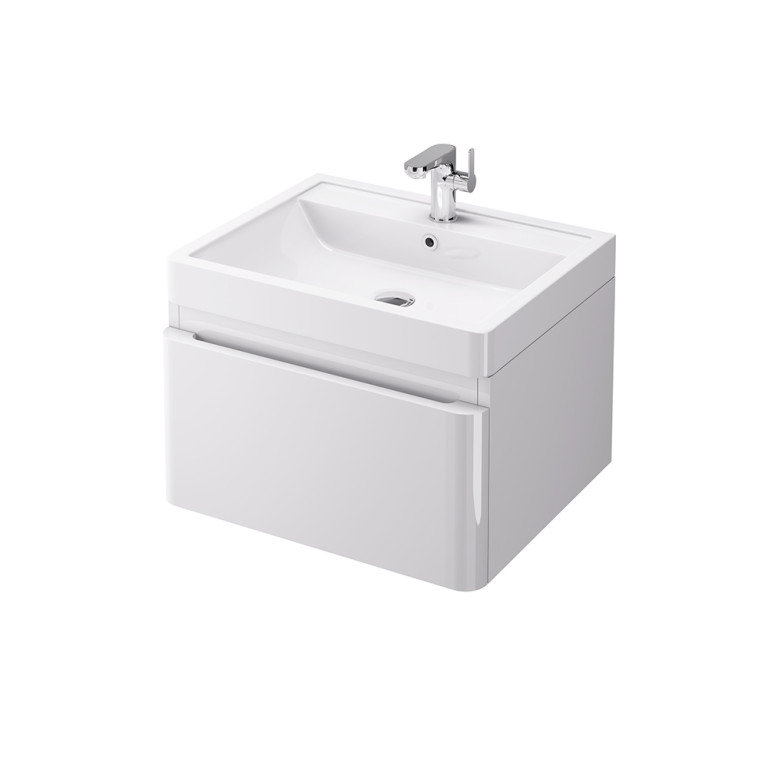 Flite 600x480mm Single Drawer Wall Mounted Basin Unit in White Gloss
