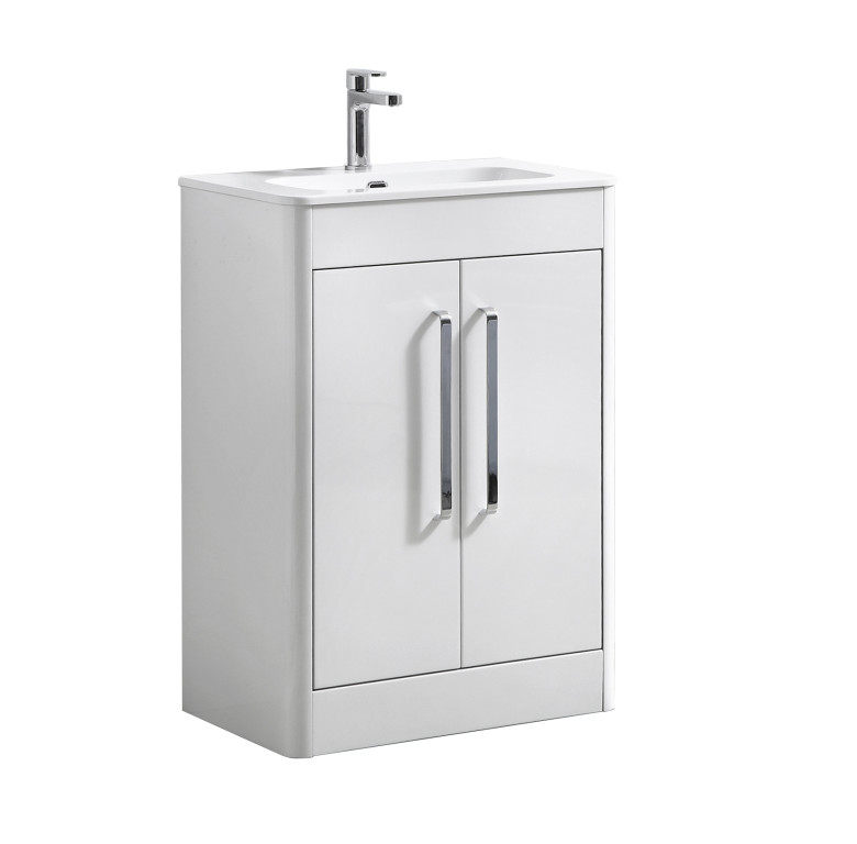 Suburb 600x395mm Two Door Floor standing Basin Unit in White Gloss
