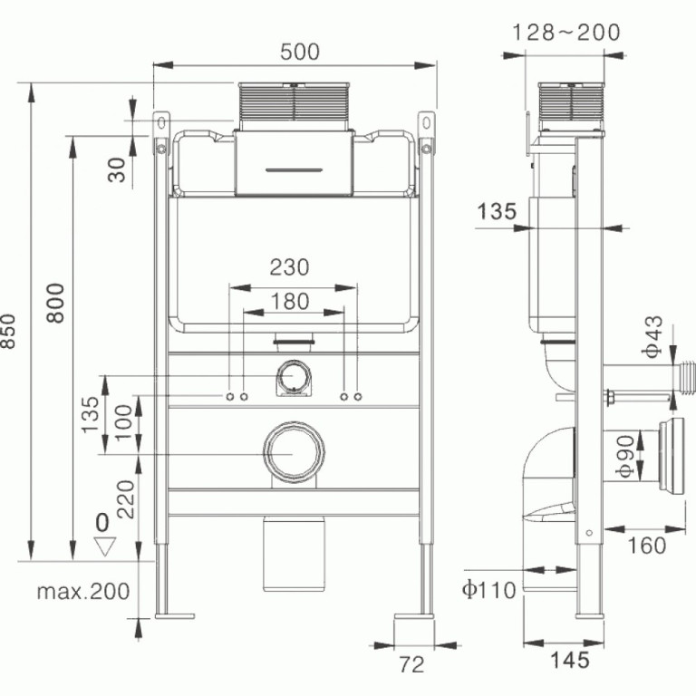 Reduced Height Wall Hung WC Bowl Frame System with Front Mounted Chrome Dual Flush Plate