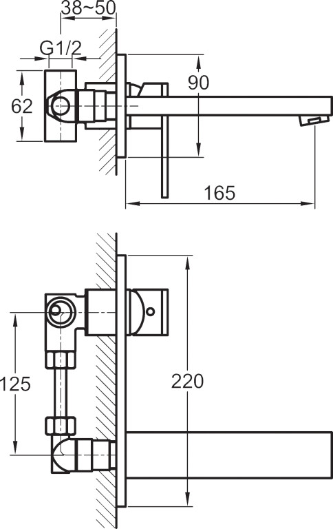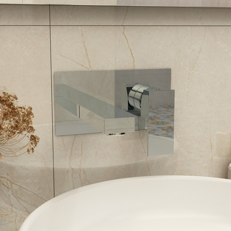 Bloque single handle wall mounted basin mixer incl clicker waste