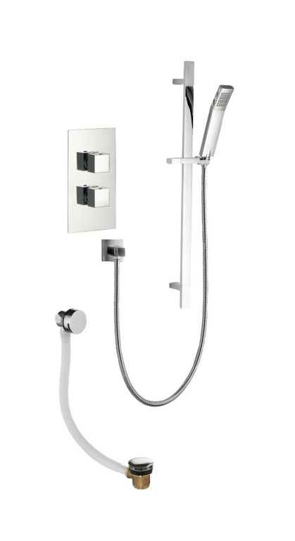 Bloque2 2 Knob Twin Outlet Concealed Valve with New Fixed Head and New Pencil Handset &...