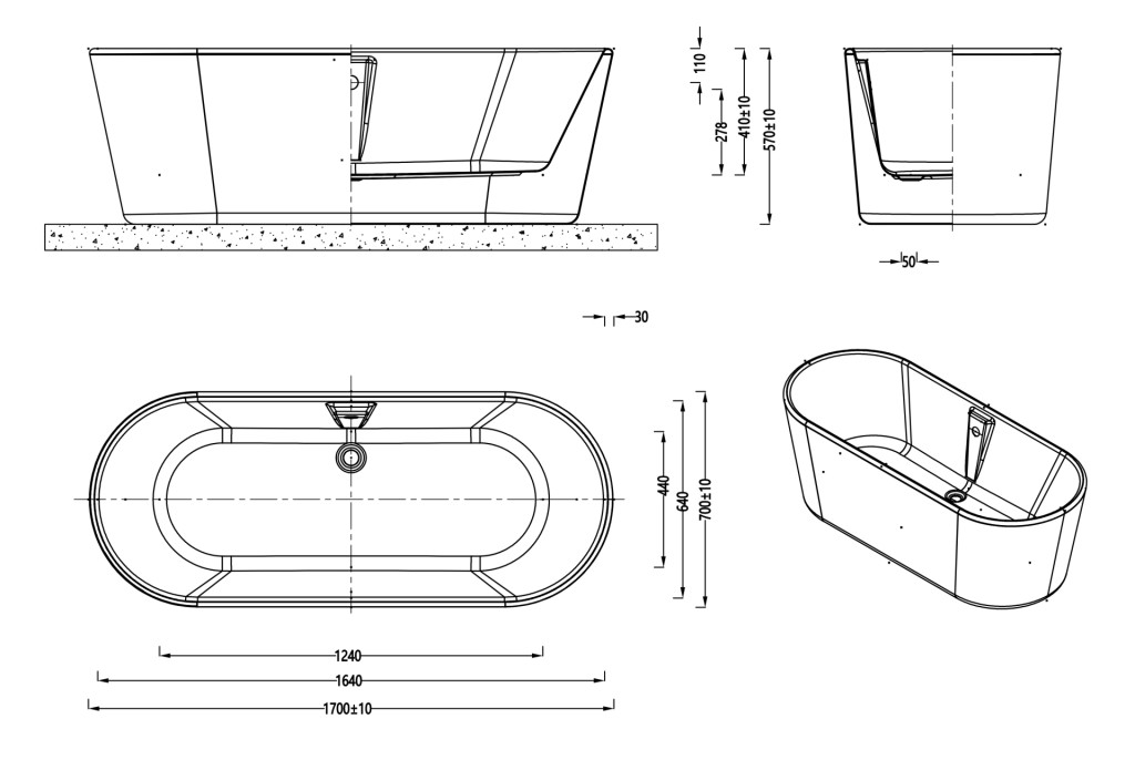 - Constructed using the finest 5mm acrylic lucite sheet, providing a bath offering comfort and excellent thermal retention