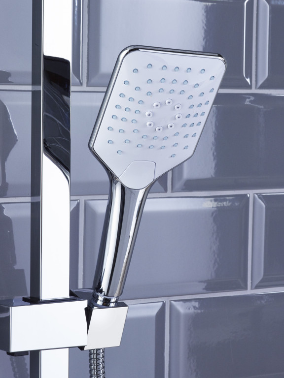 - Supplied with 1.5m hose, height adjustable riser rail, hose retainer and multi function handset with rub clean nozzles.