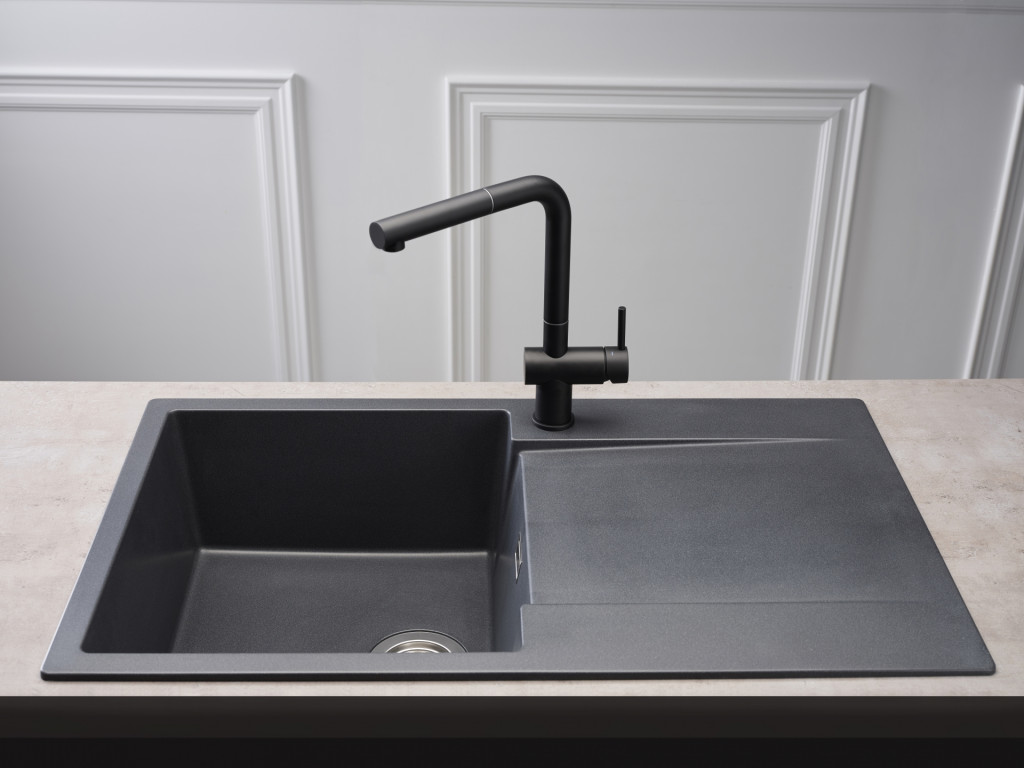 • Kitchens Kitchen Sinks AMSTERDAM 10 BS, single bowl single drainer Black Granite Sink