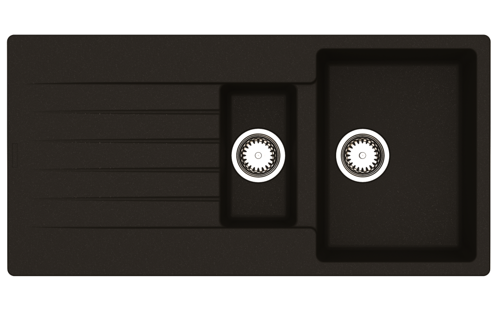 • Kitchens Kitchen Sinks HARLEM 15 BS, 1.5 Bowl Black Granite Sink