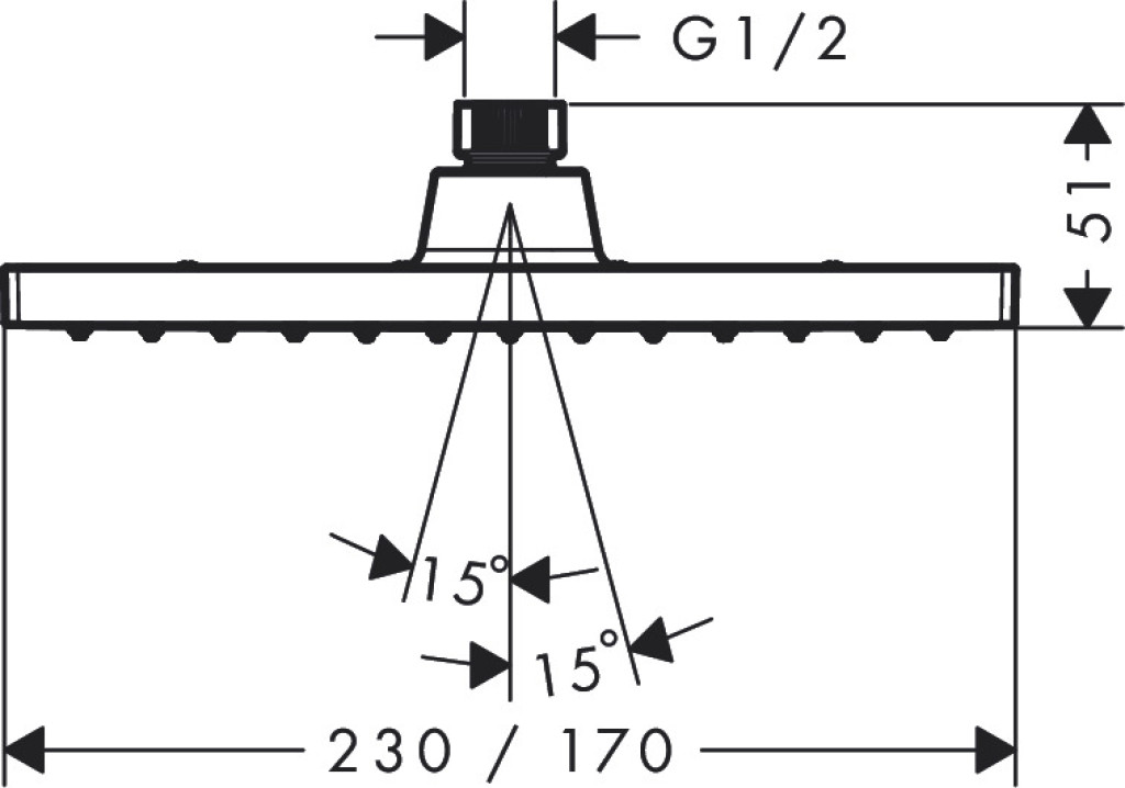 The hansgrohe Vernis Shape 230 overhead shower (1 jet type) offers the ultimate in indulgent showering at an attractive price. The overhead shower in trendy matt black is a great fit for modern architecture here. The 230x170 mm large, rectangular shower head distributes the water evenly across the body (XXL Performance). The powerful Rain jet with a water flow of max. 12.4 l/min (at 3 bar) provides an invigorating burst of freshness for the whole body. Many uses: The Vernis Shape overhead shower can be fitted to the wall or ceiling. A shower arm (24 cm, #26405670) or ceiling connector (10 cm #26406670 or 30 cm #26407670) is required for installation.