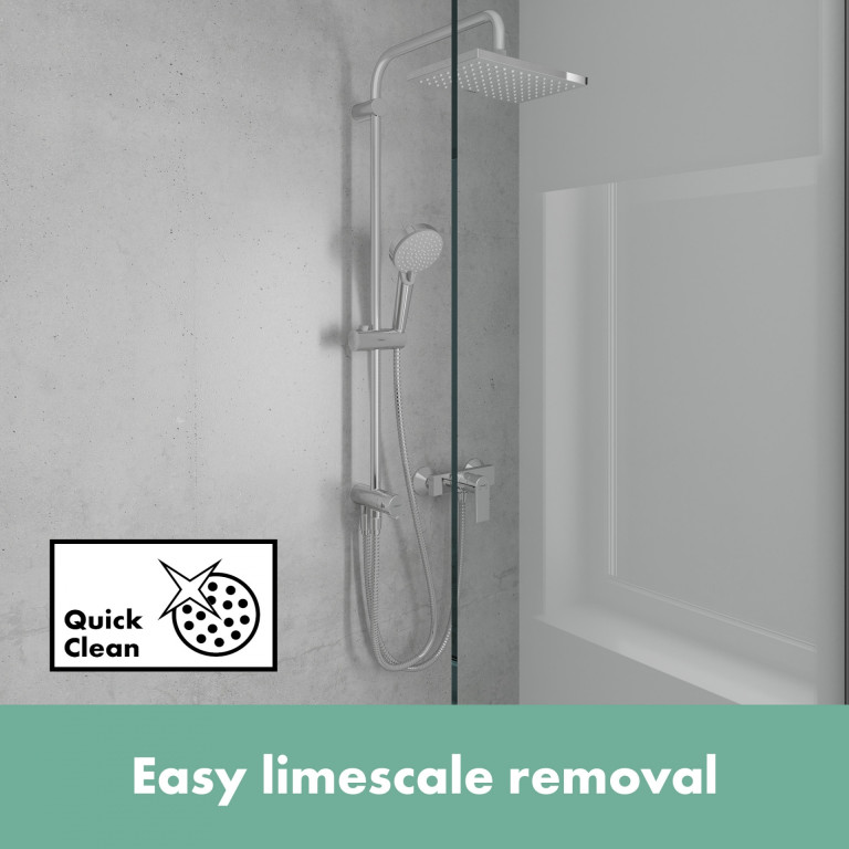- Easy care: Limescale can be removed by simply wiping the silicone nozzles on the shower head (QuickClean)