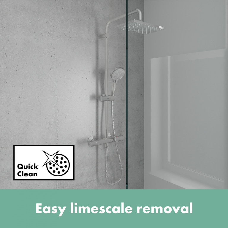 - Easy care: Limescale can be removed by simply wiping the silicone nozzles on the shower head (QuickClean)