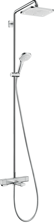 Transform the bathroom into a feel-good oasis for all with the Croma E 280 1jet with thermostatic bath mixer. The design of this showerpipe with bath filler features a wealth of experience from hansgrohe for care-free indulgence with water.