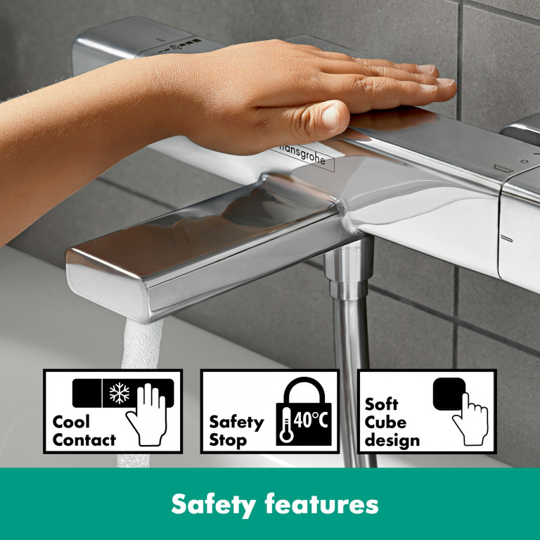 - Extra-safe: the outer casing of the thermostatic mixer is prevented from heating up, keeping it cool to the touch at all times (CoolContact)