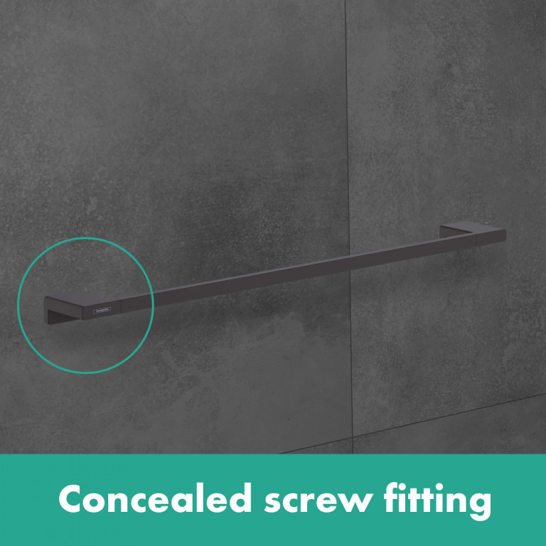 And the hansgrohe quality keeps the promises made by the premium design: THet AddStoris bath towel holder is made of metal, so it is made to last. This product is both a sustainable use of resources and it reduces the amount of plastic in bathrooms. The surface finish in a matt black colour is easy to clean and is one of the colour schemes in the range of hansgrohe special surface finishes for taps (FinishPlus). So everything can match perfectly.