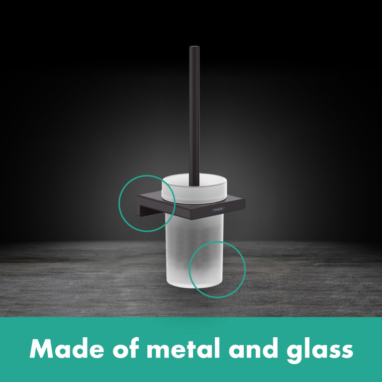 And the hansgrohe quality keeps the promises made by the premium design: THet AddStoris toilet brush holder is made of metal and glass, making it ultra-durable and a sustainable use of resources. The surface finish in a matt black colour is easy to clean and is one of the colour schemes in the range of hansgrohe special surface finishes for taps (FinishPlus). So everything can match perfectly.