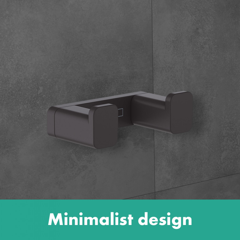 And the hansgrohe quality keeps the promises made by the premium design: THet AddStoris bath towel holder is made of metal, so it is made to last. This product is both a sustainable use of resources and it reduces the amount of plastic in bathrooms. The surface finish in a matt black colour is easy to clean and is one of the colour schemes in the range of hansgrohe special surface finishes for taps (FinishPlus). So everything can match perfectly.