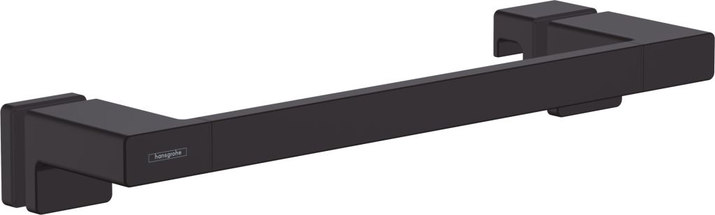 And the hansgrohe quality keeps the promises made by the premium design: THet AddStoris shower door handle is made of metal, so it is made to last. This product is both a sustainable use of resources and it reduces the amount of plastic in bathrooms. The surface finish in a matt black colour is easy to clean and is one of the colour schemes in the range of hansgrohe special surface finishes for taps (FinishPlus). So everything can match perfectly.
