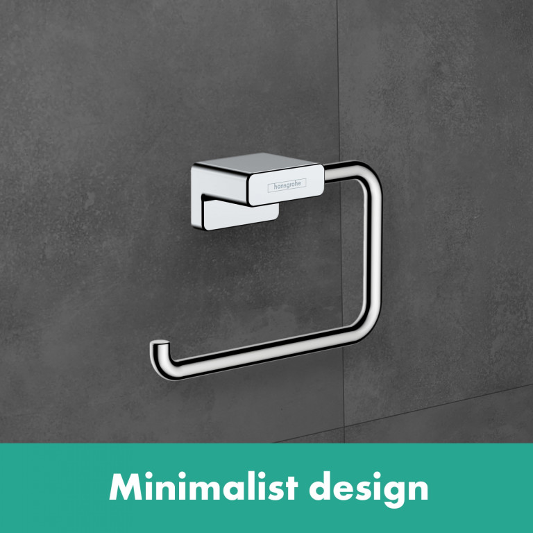 And the hansgrohe quality keeps the promises made by the premium design: THet AddStoris roll holder is made of metal, so it is made to last. This product is both a sustainable use of resources and it reduces the amount of plastic in the environment. The surface finish is lavishly chrome-plated – a material that is easy to clean and keeps its shine.