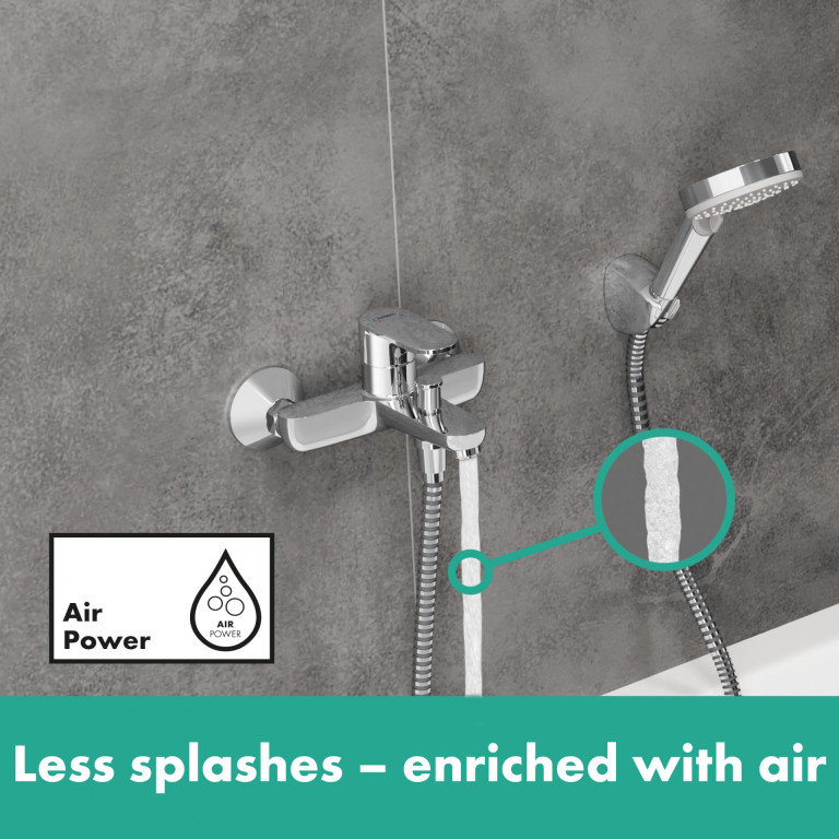 With its timeless elegance, the Vernis Blend single lever bath mixer (exposed installation) is the perfect tap for bath tub solutions on a small budget. The exposed installation single lever tap is perfect for problem-free bathroom renovations. The exposed installation tap can be screwed on to existing standard S connections in no time at all (size: G ½. DN15). Equally as easy: All standard shower hoses fit the water outlet for the shower head. With its flow rate of up to 22.5 l/min (at 3 bar), the bath tub can be filled in no time at all.