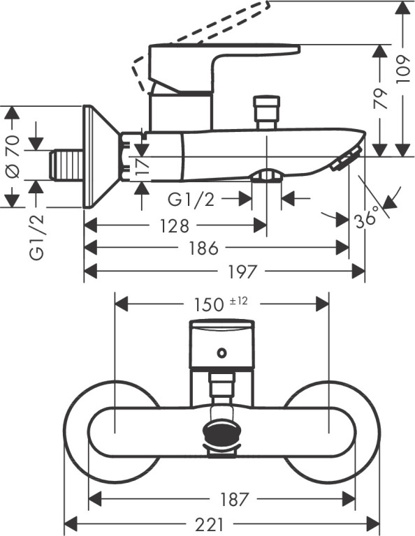 With its timeless elegance, the hansgrohe Vernis Blend single lever bath mixer with two flow rates (exposed installation) is the perfect tap for bath tub solutions on a small budget. The exposed installation single lever tap is perfect for problem-free bathroom renovations. The exposed installation tap can be screwed on to existing standard S connections in no time at all (size: G ½. DN15). Equally as easy: All standard shower hoses fit the water outlet for the shower head. The water quantity and temperature can be set using the user-friendly and ergonomically shaped handle, which controls the high-quality hansgrohe ceramic mixer system using the water-saving Eco handle position. Approx. 50% less water flows if the lever handle is only raised to this first position (two flow rates) to save money and the environment.
