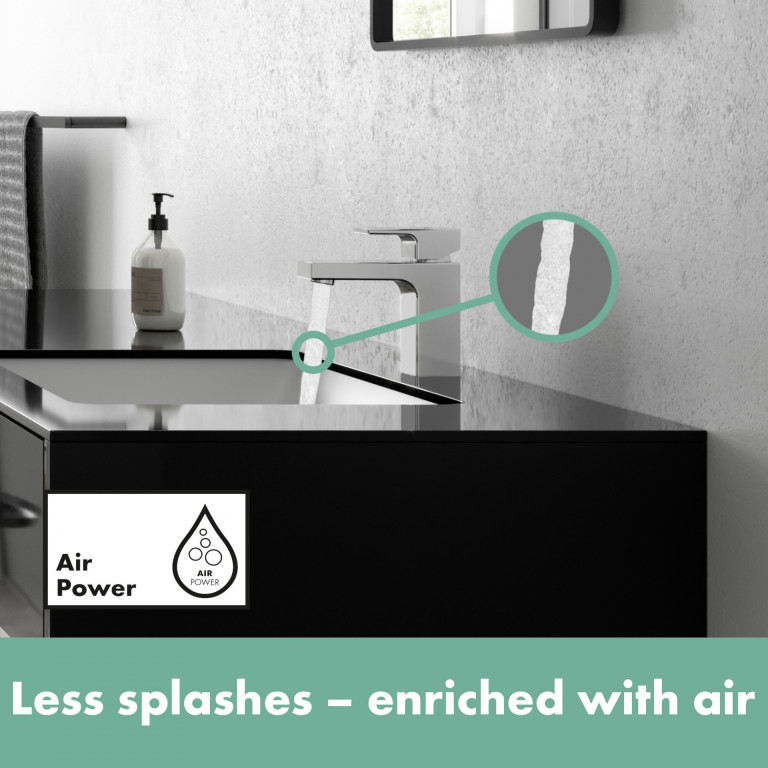 - This tap enriches the water with air for a full water jet with less splash (AirPower)