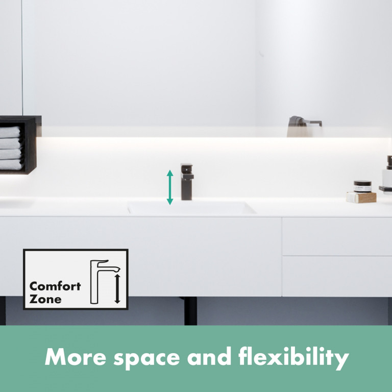 - More room to move: The distance between the spout and wash basin creates space and makes it easier to use (ComfortZone 100)
