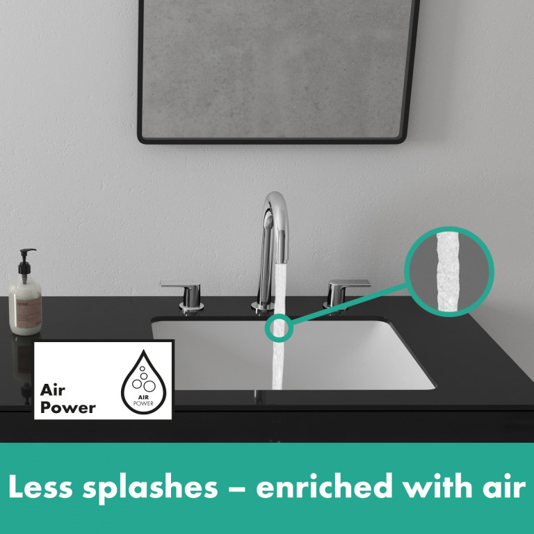 - This tap enriches the water with air for a full water jet with less splash (AirPower)
