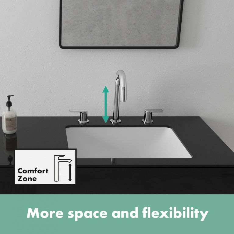 - More room to move: The large distance between the spout and wash basin offers more space for convenient use (ComfortZone 150)