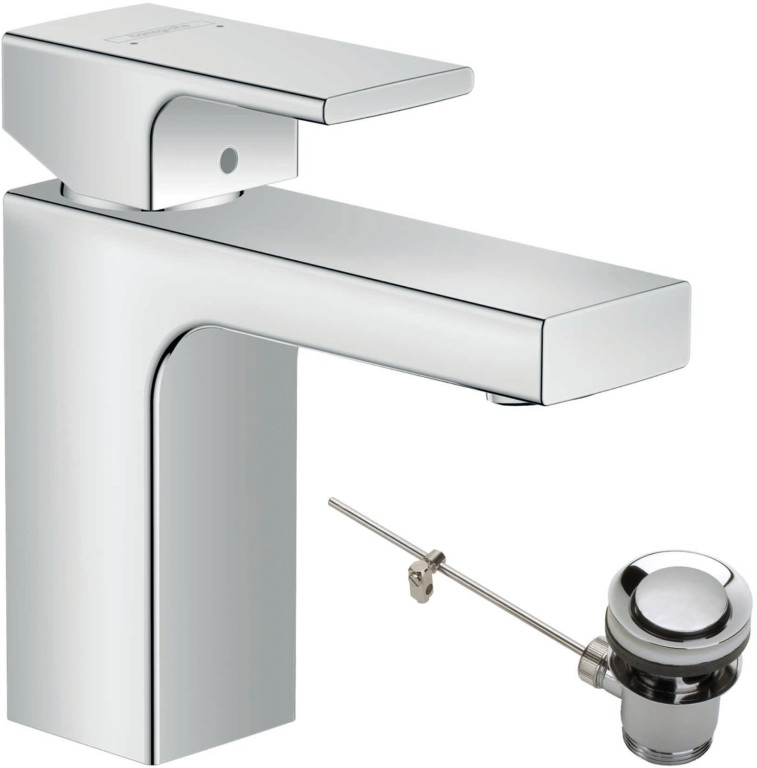The Vernis Shape single lever basin tap 100 with pop-up waste set impresses users with an exciting mixture of curves and edges. The distinctive design makes the zinc tap the perfect partner at the wash basin, especially in modern bathrooms or guest toilets. What is so special about this tap? The internal flow of water prevents drinking water from coming into contact with the metal of the tap. Convenient: The gap between spout and wash basin provides plenty of space for comfortable use (ComfortZone 100). The robust metal pop-up waste set comes with the product and can be reliably opened and closed with one hand. The Vernis Shape taps also bring bold design and tried-and-tested hansgrohe user-friendliness to the bathroom and are available at an attractive price.