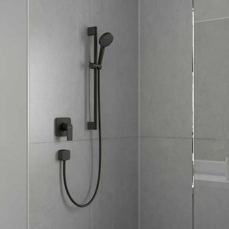 Distinctive design, bold surface finish and the reliable hansgrohe comfort for tighter budgets: single lever shower mixer for concealed installation in matt black