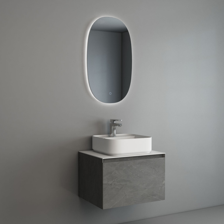 Ravine 600mm Single Drawer Cabinet in Grey Marble