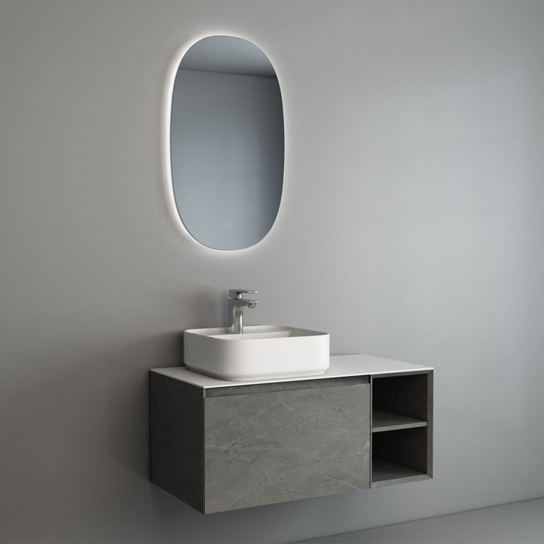 Ravine 900mm Single Drawer Cabinet with Open Storage in Natural Stone