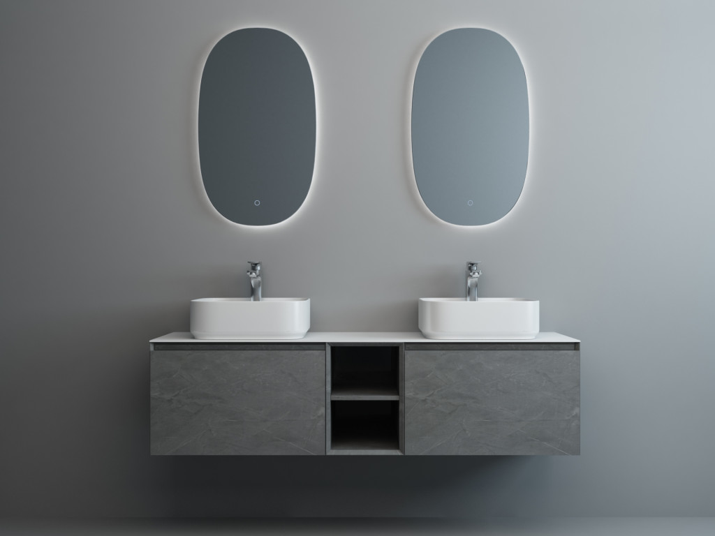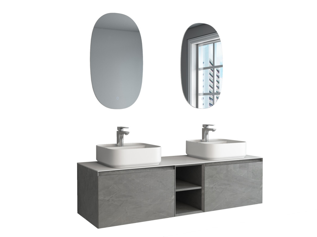 Ravine 1500mm twin Single Drawer cabinet with storage in Grey Marble