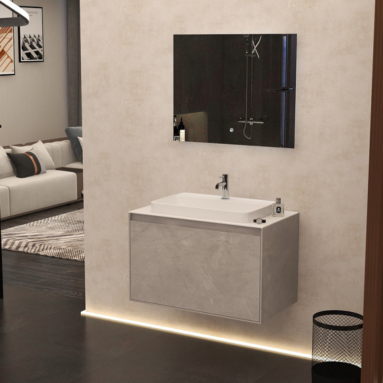 Arco 800mm Single Drawer Cabinet in Natural Stone