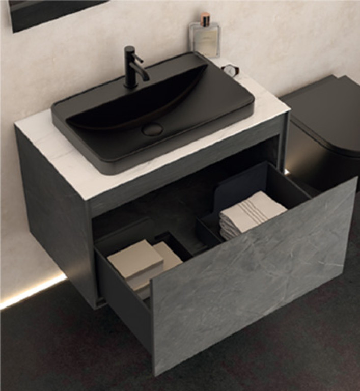 Arco 800mm Single Drawer Cabinet in Natural Stone
