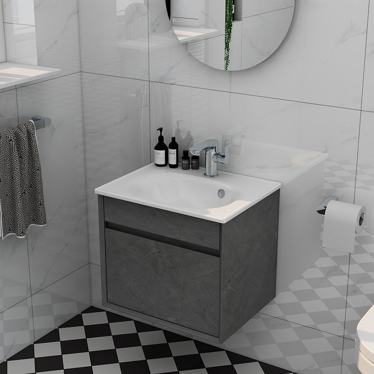Alma 500mm Single Drawer cabinet in Grey Marble