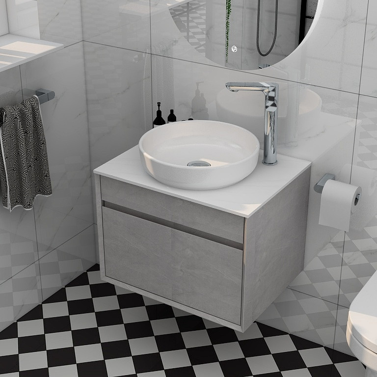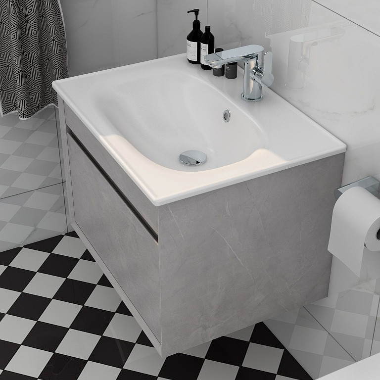 Alma 600mm Single Drawer Cabinet in Natural Stone