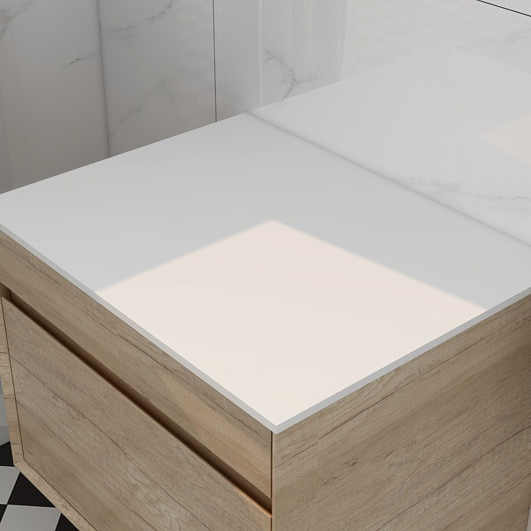 Alma Quartz stone 600mm worktop in solid white ( cut to fit LW1818 Basin)