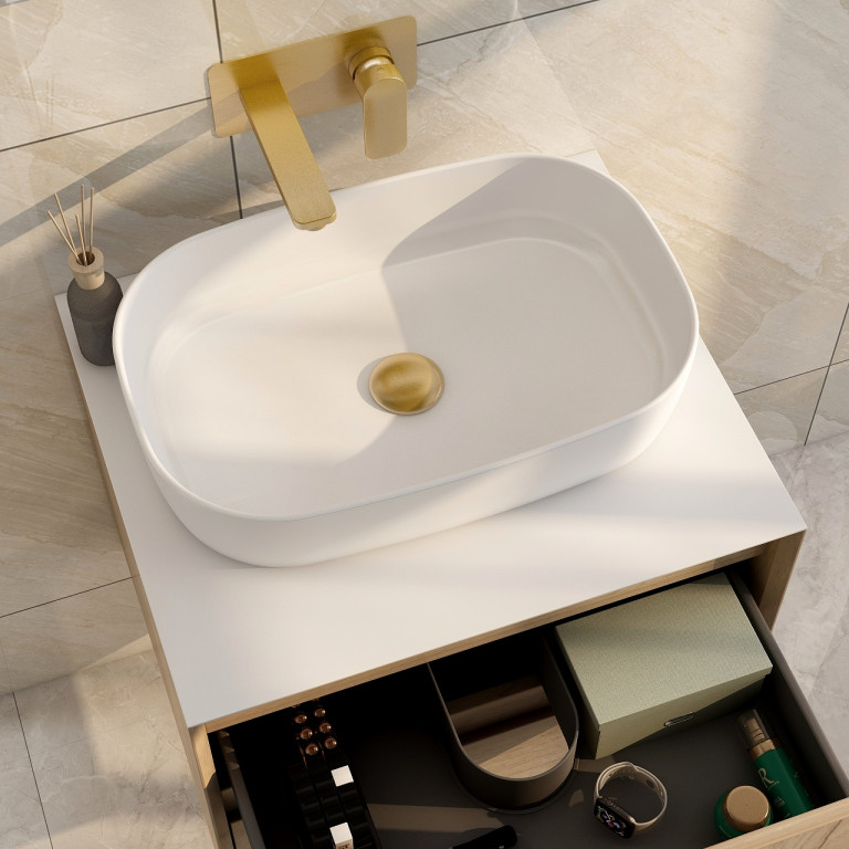 Grace Quartz stone 600mm worktop in solid white ( cut to fit LW1822/1823/1825 Basins)