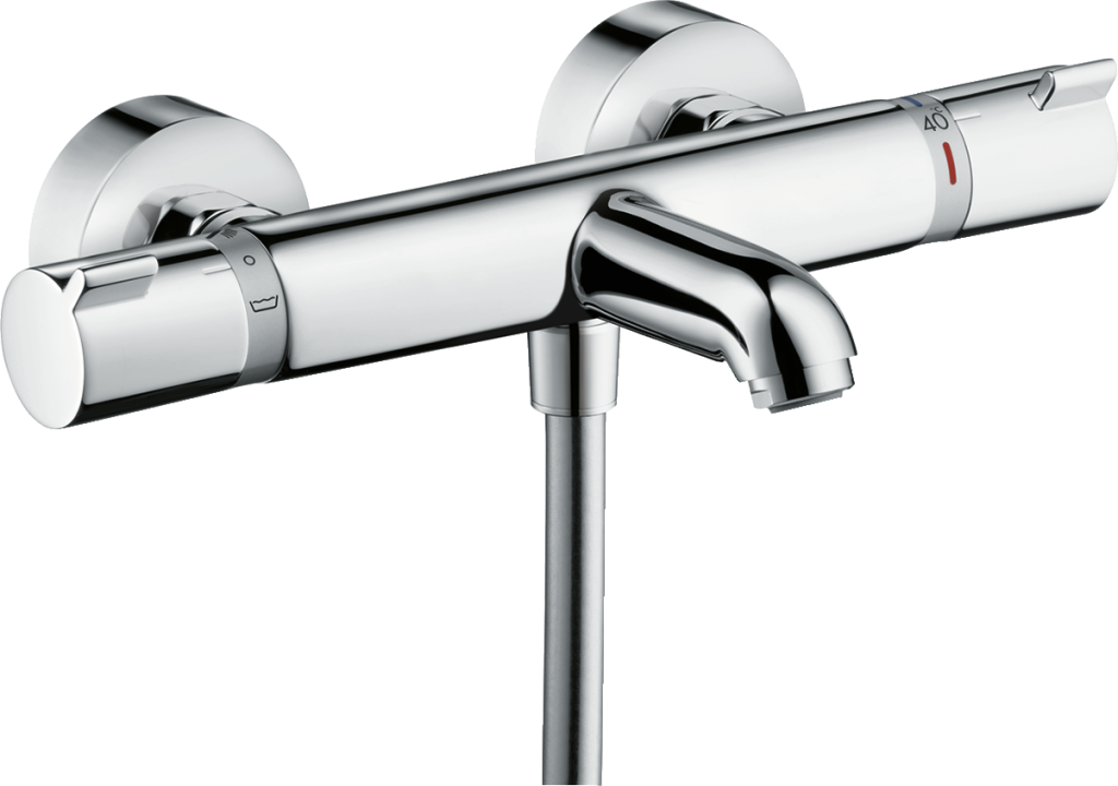 The hansgrohe bath thermostat Ecostat Comfort is a modern water control that is quickly and easily fitted to the existing connection (surface-mounted installation). The thermostat is made of high-gloss quality chrome, and is an optical highlight. A patented, long-lasting hansgrohe cartridge is at work on the inside. Two rotary controls keep the water amount and temperature at a constant level. This protects the user against unpleasant fluctuations when showering or filling the bath – regardless of the pressure in the domestic supply.