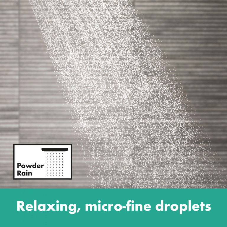 - PowderRain: the new jet type surrounds users like a cocoon with thousands of micro-fine droplets like ultra-soft summer rain