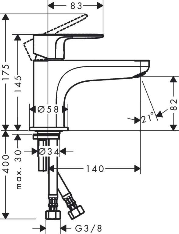 Flexible connection hoses make installation easier (size: DN15). The tap is simply connected to the existing water connection using these. The tap is suitable for hard water too – the aerator can be removed for cleaning and descaled using a coin. No tools needed. This keeps the mixer looking like new.