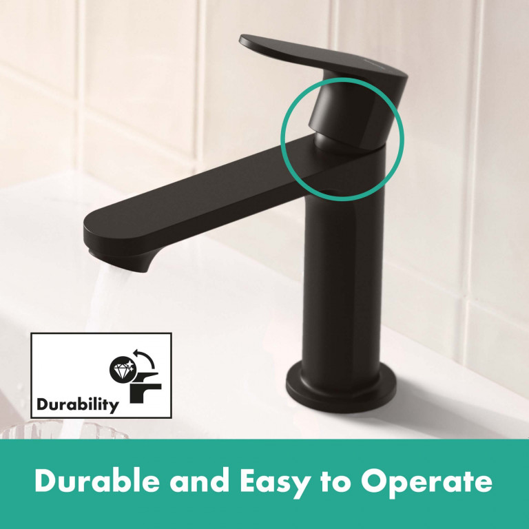 The renowned hansgrohe quality brings the promises of a winning design to life: A high-quality ceramic mixer system controls the water volume and temperature. This keeps working smoothly and reliably even after frequent use. Want to save water and energy? Yes, totally automatically: when the handle is in the centre position, only cold water flows. Hot water will only run if it is turned to the left (CoolStart). The flow rate is limited to max. 5 l/min even at high water pressure (EcoSmart). For a full water jet, the single lever tap enriches the water with air (AirPower). This creates a soft jet that splashes less – meet the beauty of water.