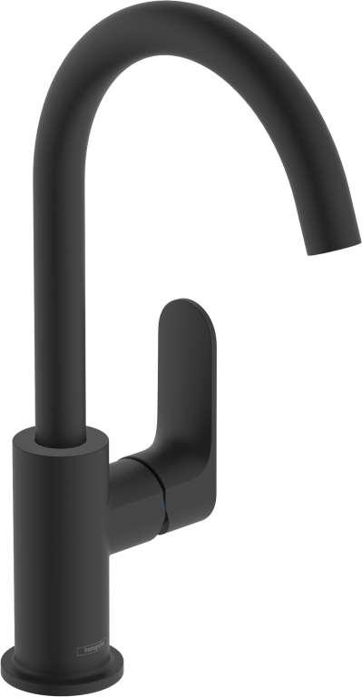 Quality that suits your style: Rebris S basin tap in matt black with swivel spout and pop-up waste set