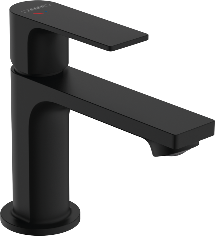 Quality that matches your style and helps protect the environment: particularly economical Rebris E basin tap in matt black with CoolStart and pop-up waste