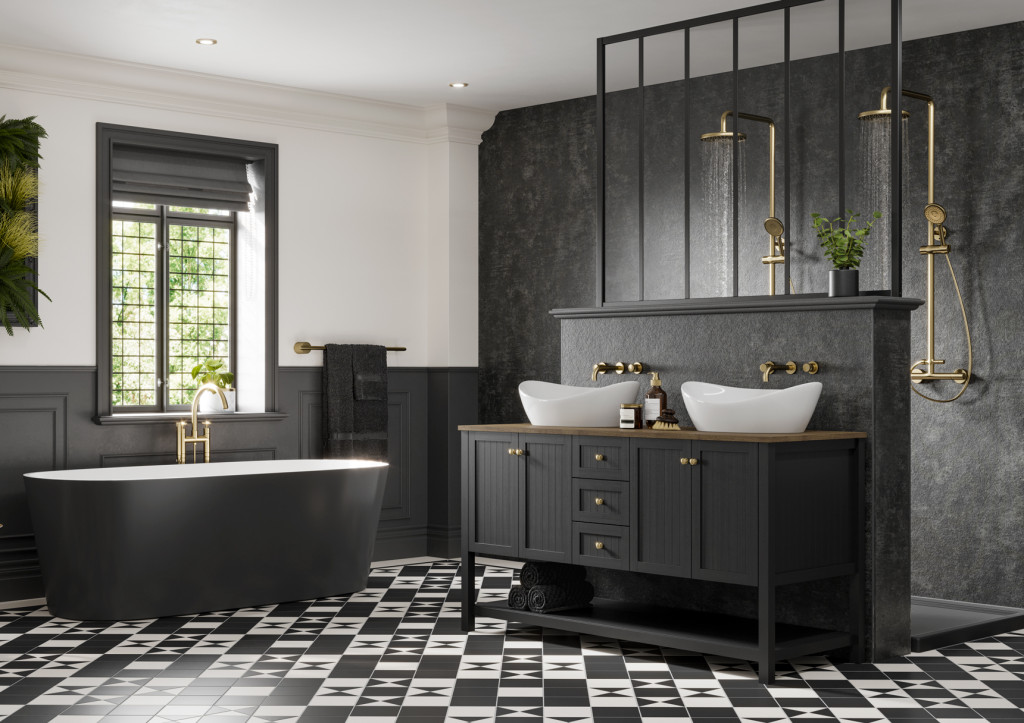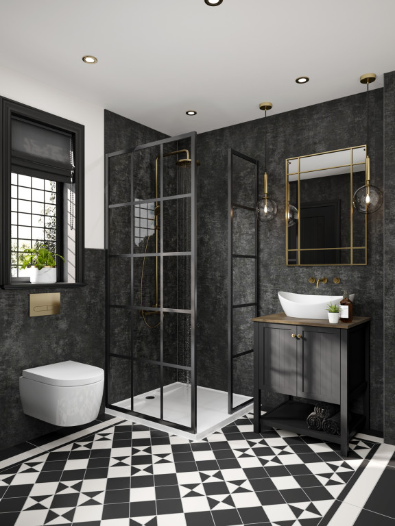 Graphite Elements bathroom wall panels from the Linda Barker Collection are designed to mimic the appearance of graphite. These highly textured panels offer depth to the touch and the colour tones within the design allow it to pair beautifully with Pebble Grey from the Neutrals Collection.