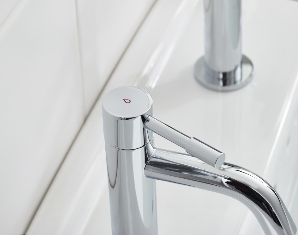 A unique range that has contemporary appeal with it's elongated angled spout and stylish easy to use lever.