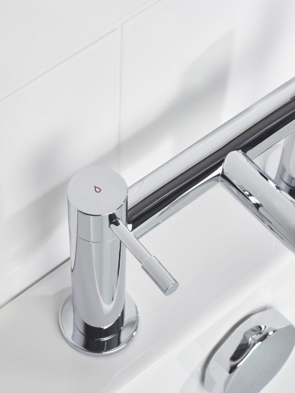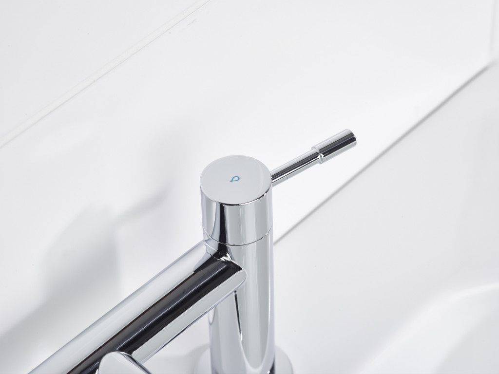 A unique range that has contemporary appeal with it's elongated angled spout and stylish easy to use lever.