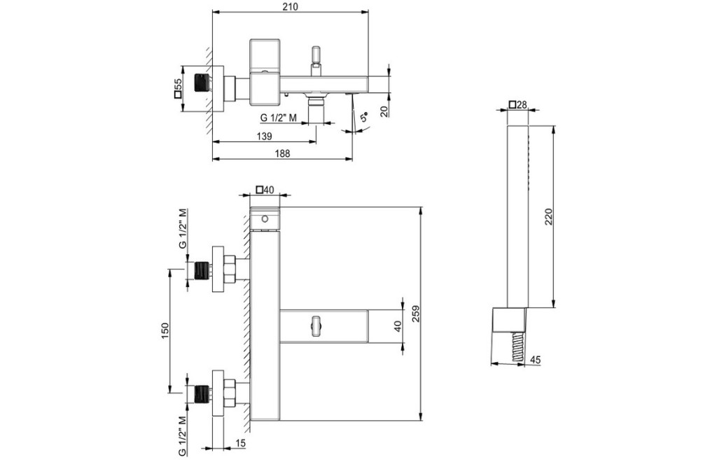 - High Pressure Wall Mounted Silver Bath Shower Mixer